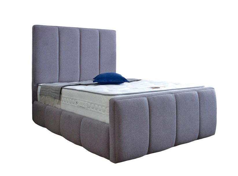 A premium British-made ottoman bed featuring a luxurious pleated 140cm tall upholstered headboard, extra-deep storage, and a powerful gas-lift system. Hand-crafted with high-quality timber, available in 30+ colours and fabrics. Designed for modern bedrooms that demand comfort, style, and maximum storage.