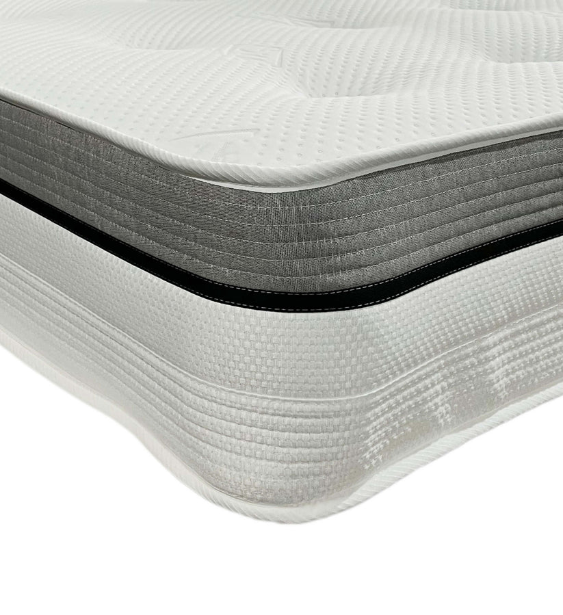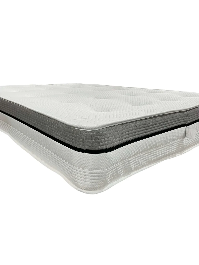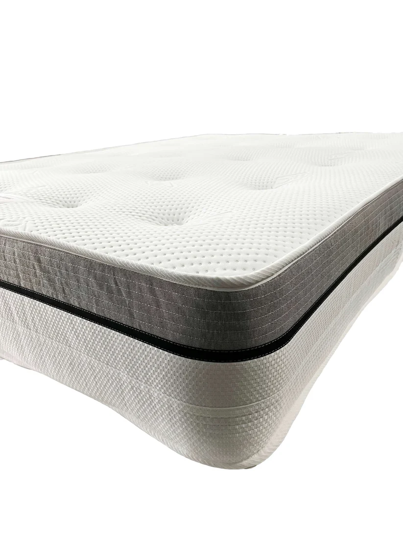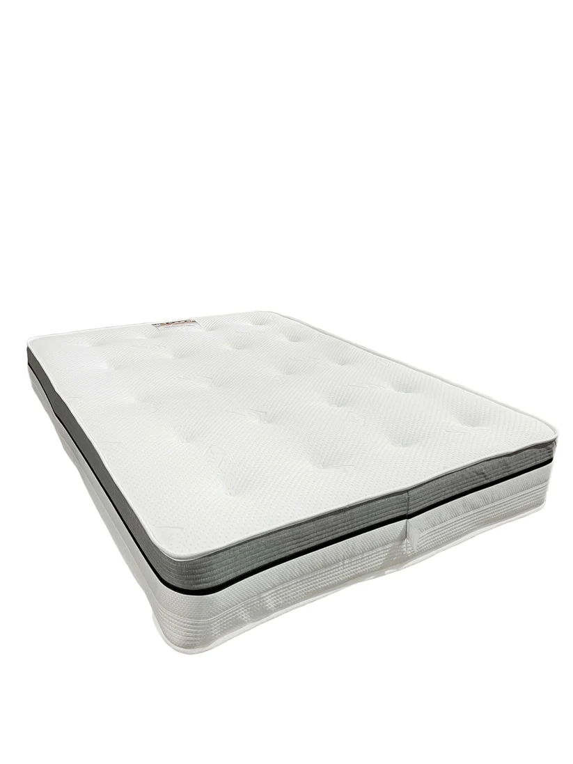 The super orthopaedic open coil sprung mattress is 24cm deep and features a durable 13.5 gauge open spring unit with enhanced rod edge support to provide long lasting shape and prevent ‘roll off’.